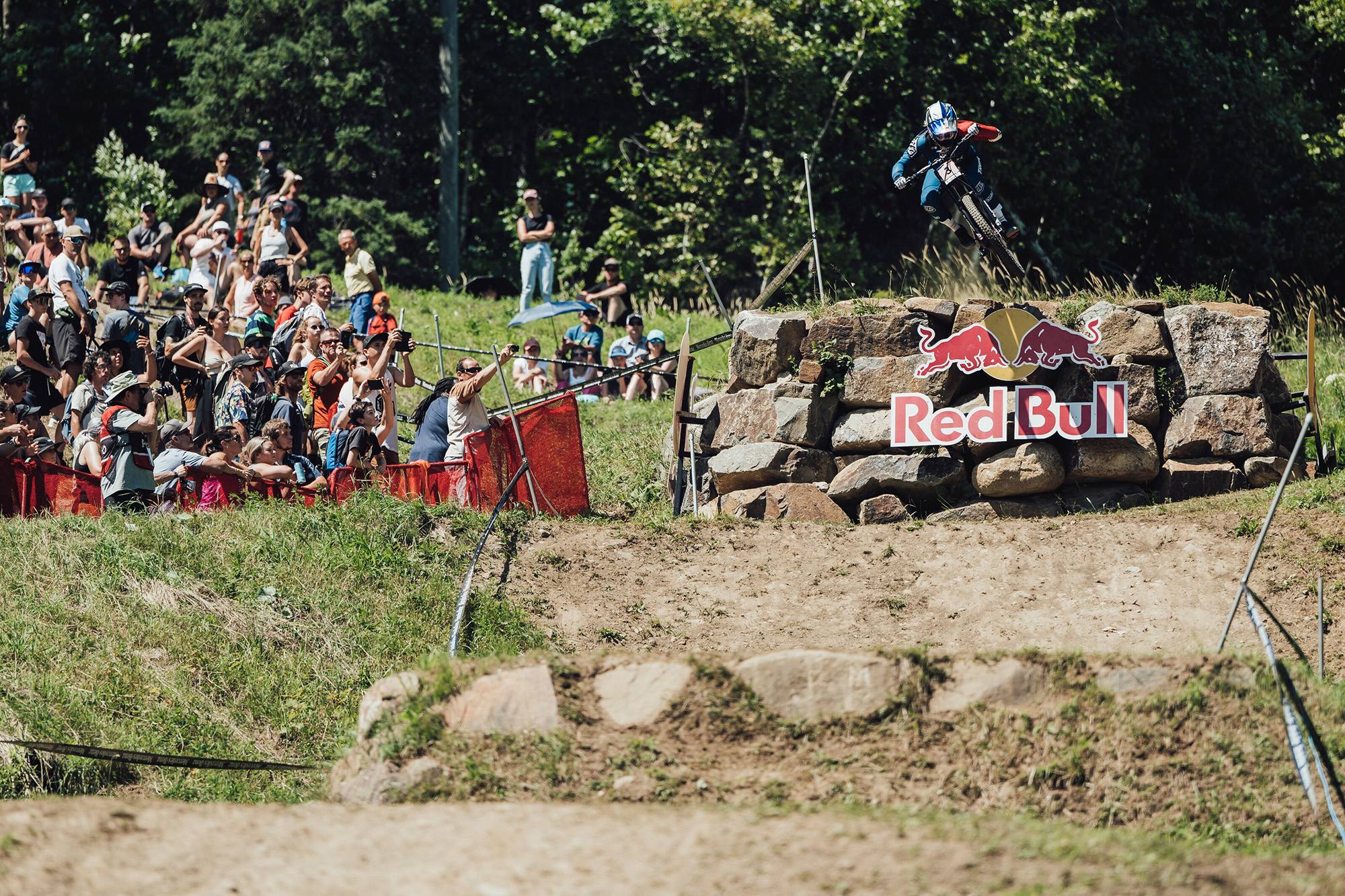 In the women’s event, Italian Eleonora Farina set the fastest time from the earlier riders with New Zealand’s Jess Blewitt settling into second place over 10 seconds behind with the last four riders set to go. French rider Myriam Nicole was next out of the start gate, but she got a flat rear tyre after she was up at the first three splits to give the last three riders a boost heading down the tricky course. German Nina Hoffman put together a brilliant run third last down to beat Farina by over a second and take the lead, however Slovenian Monika Hrastnik could not put it together to finish in fifth.
