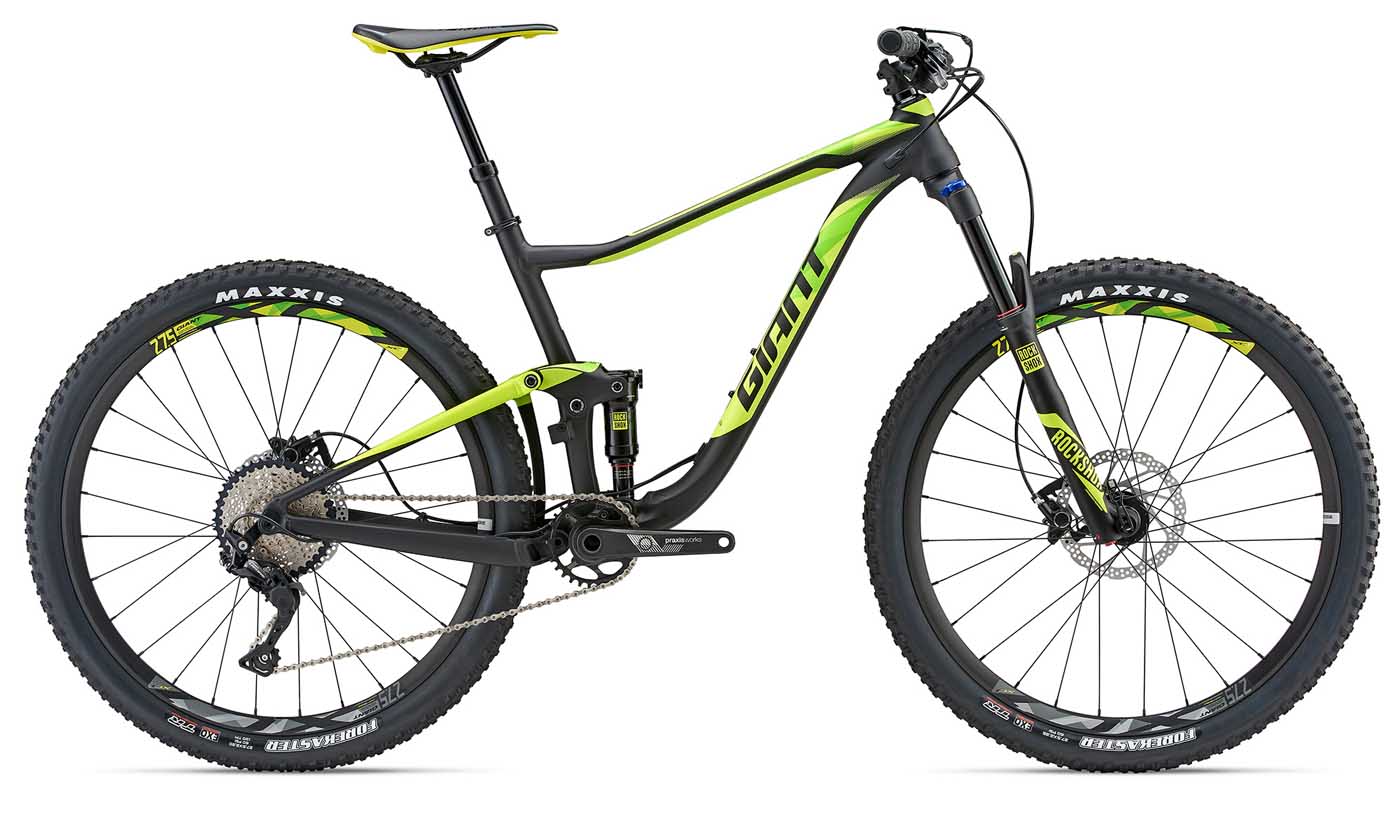 “The alloy frame brother of the Trance Advanced. Featuring a ALUXX SL aluminum frame with updated Maestro rear suspension featuring a trunnion mount shock and Advanced Forged Composite rocker arm. The result: 140mm of smooth, active rear travel to conquer the roughest trails. Frame geometry is designed around its 27.5 inch wheels, which deliver both quickness and control on rugged terrain. It also comes with a 150mm suspension fork for even more confidence, making it perfect for technical terrain.”