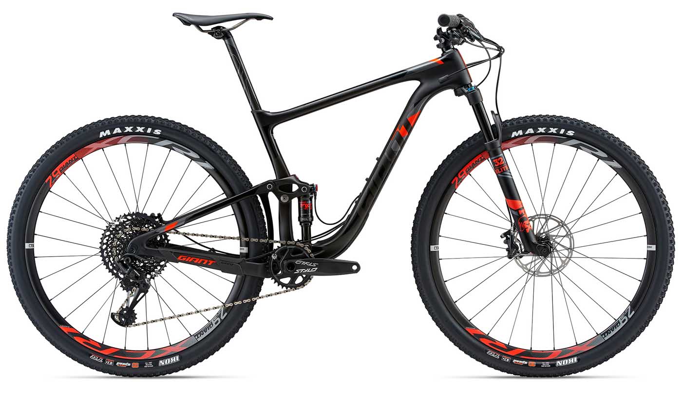 “Fancy yourself winning a XC World Cup race? Look no further than the all new Anthem Advanced Pro 29er! More than two years in the making, this new addition to the legendary Anthem series blends the most up-to-date Maestro rear suspension with the speed, control and stability of totally reengineered 29er frame geometry. Handcrafted with a superlight Advanced grade composite mainframe and rear triangle, it features 90mm of smooth rear suspension travel and 100mm up front. The result: a fire breathing XC machine that’s all about speed and control. The new trunnion mount shock produces a lower leverage ratio for better pedalling and braking efficiency, and also allows for shorter chainstays to improve the bike’s climbing capabilities and agility. The Advanced Forged Composite upper rocker arm is lighter, stiffer and stronger than the previous aluminium version and the combination of wider Boost hub spacing and Giant Wheel Systems gives you super strong and stiff wheels for confident, precise handling on rugged trails.”