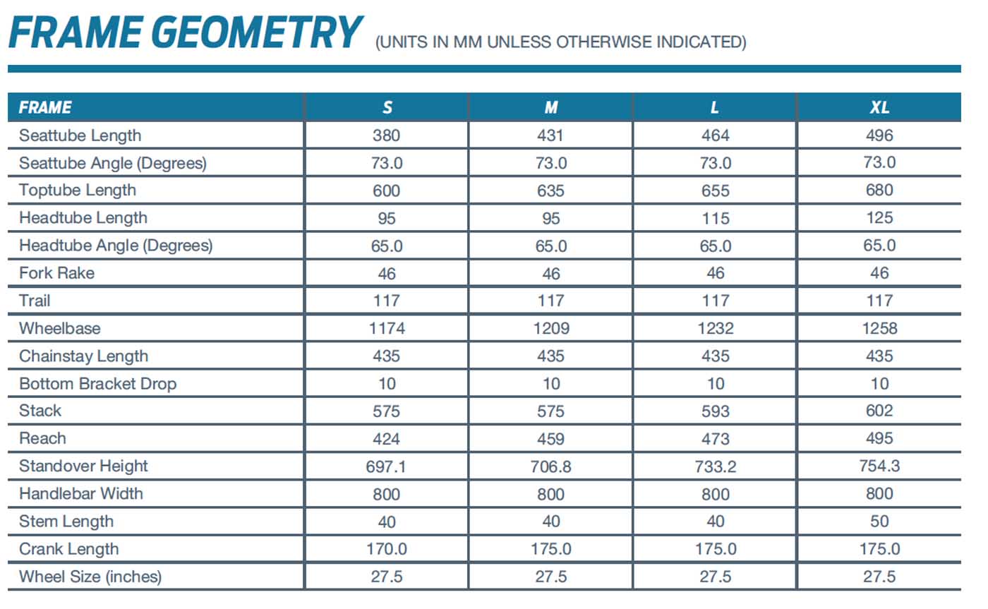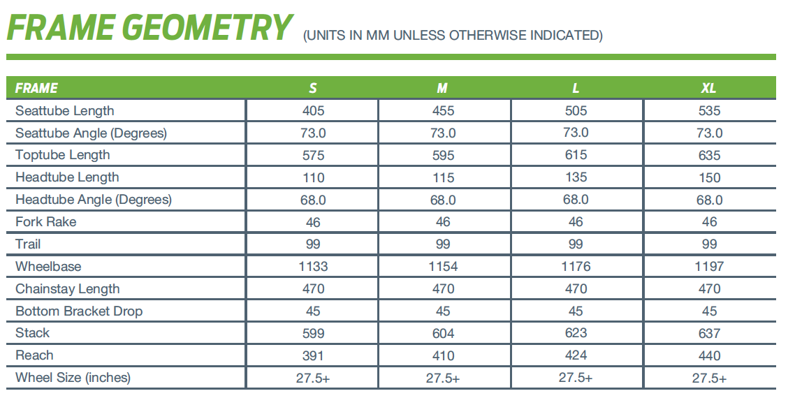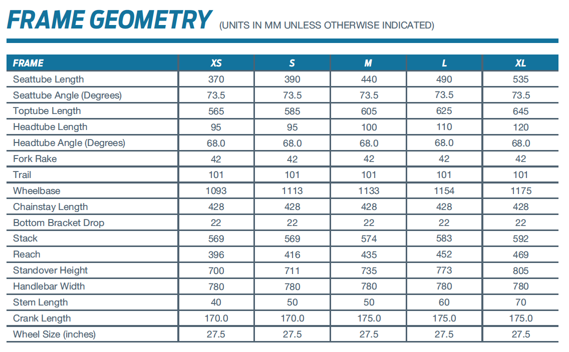 – 27.5 inch wheel technology for a balanced, confident ride quality.