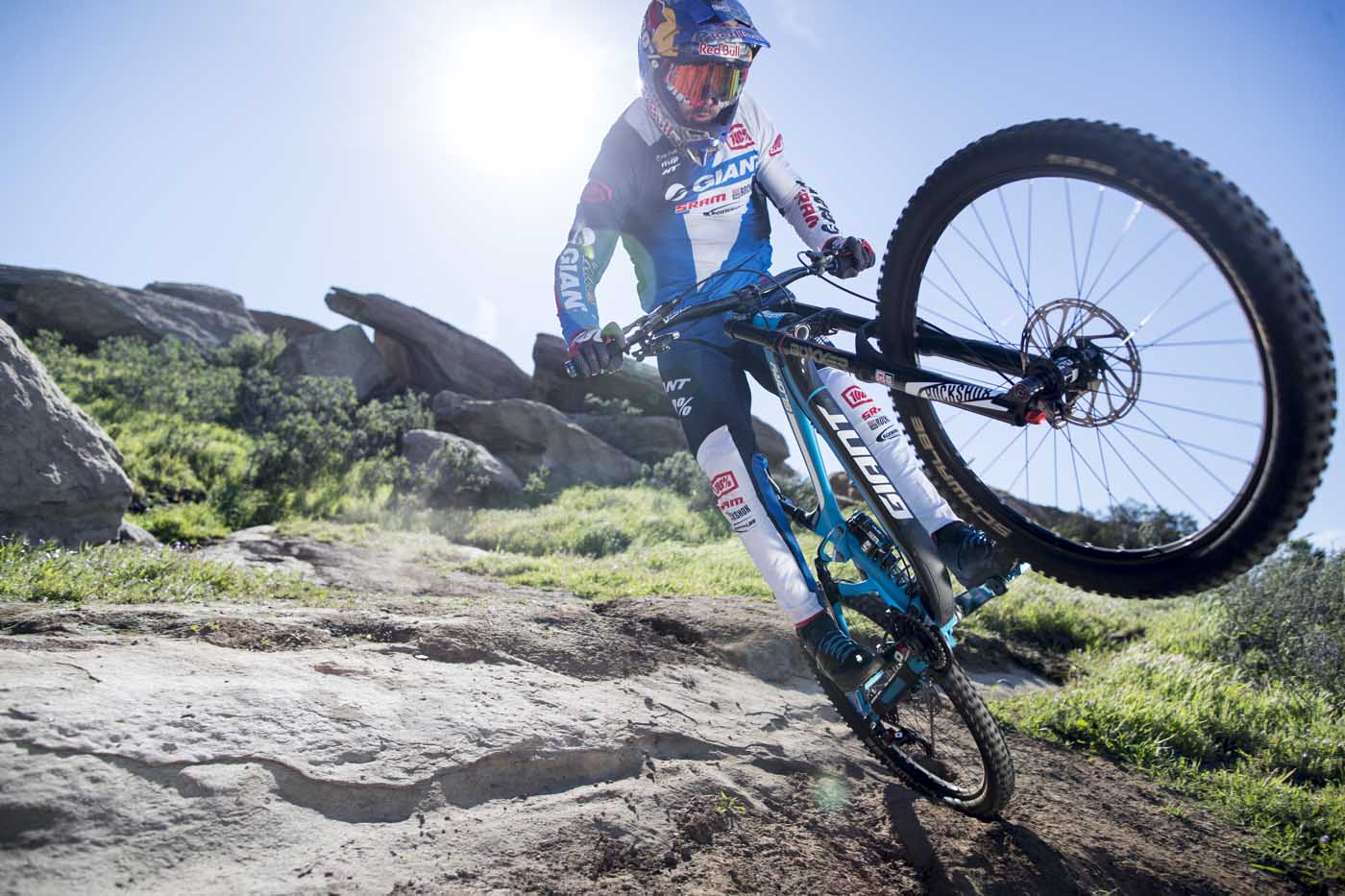 “Developed and fine tuned over several World Cup seasons, the latest generation Glory Advanced delivers Giant’s Factory pros every advantage in a sport decided by fractions of a second. Featuring 200mm of fully active Maestro rear suspension on a superlight, stiff and strong composite mainframe which has been optimized around 27.5 inch wheels.”