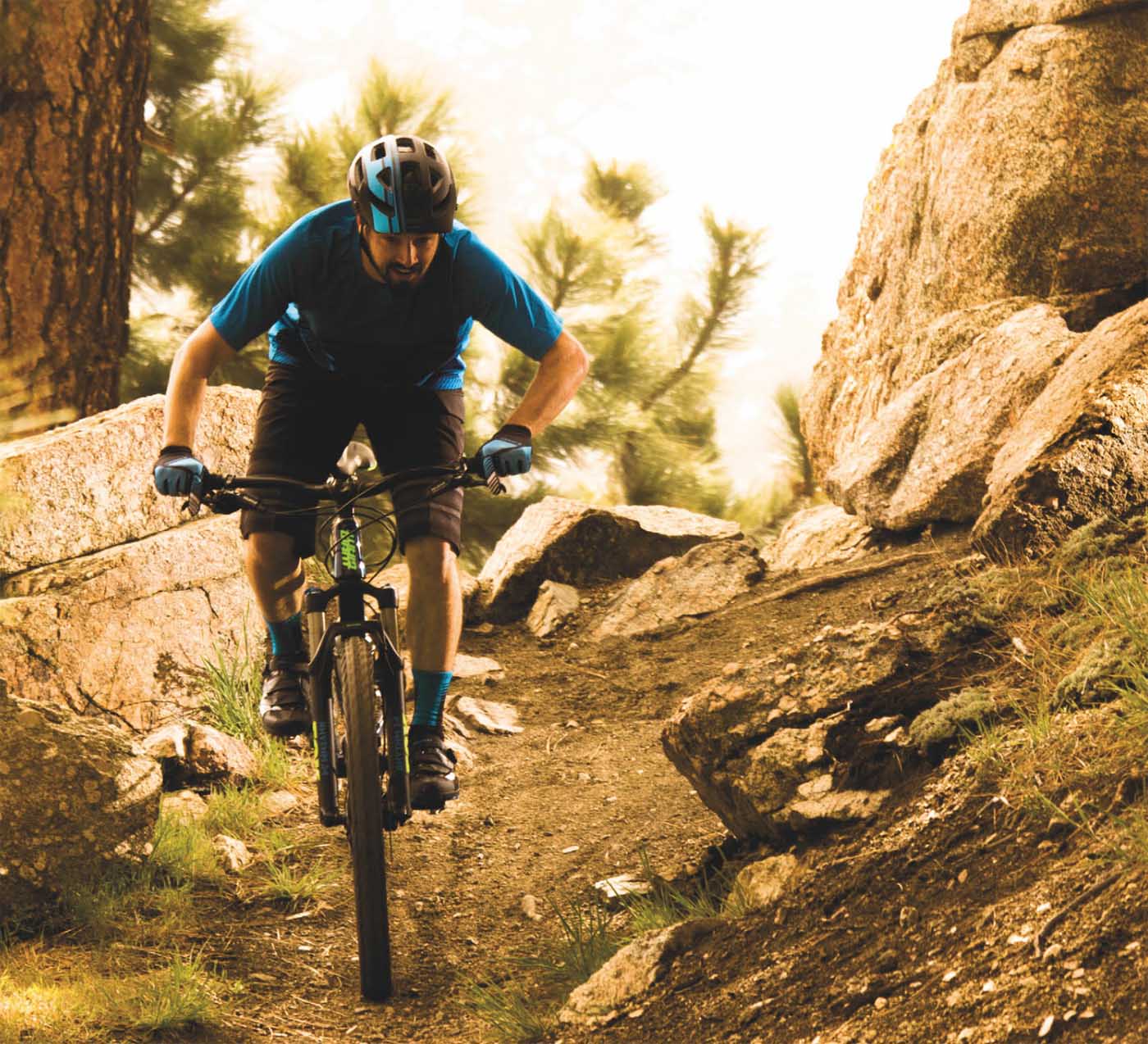 – 100mm travel front suspension offers control and confidence in XC terrain.