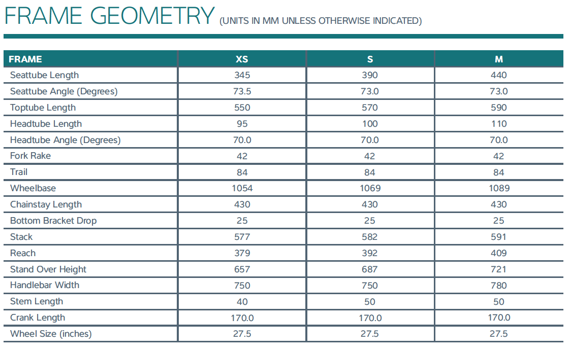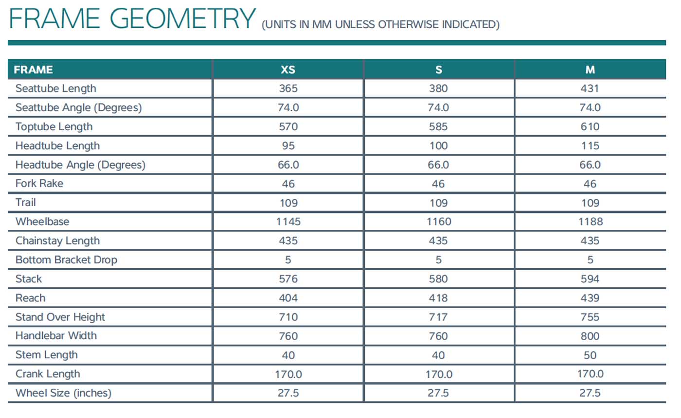 – 27.5 inch wheel specific geometry optimises control, acceleration and stability.