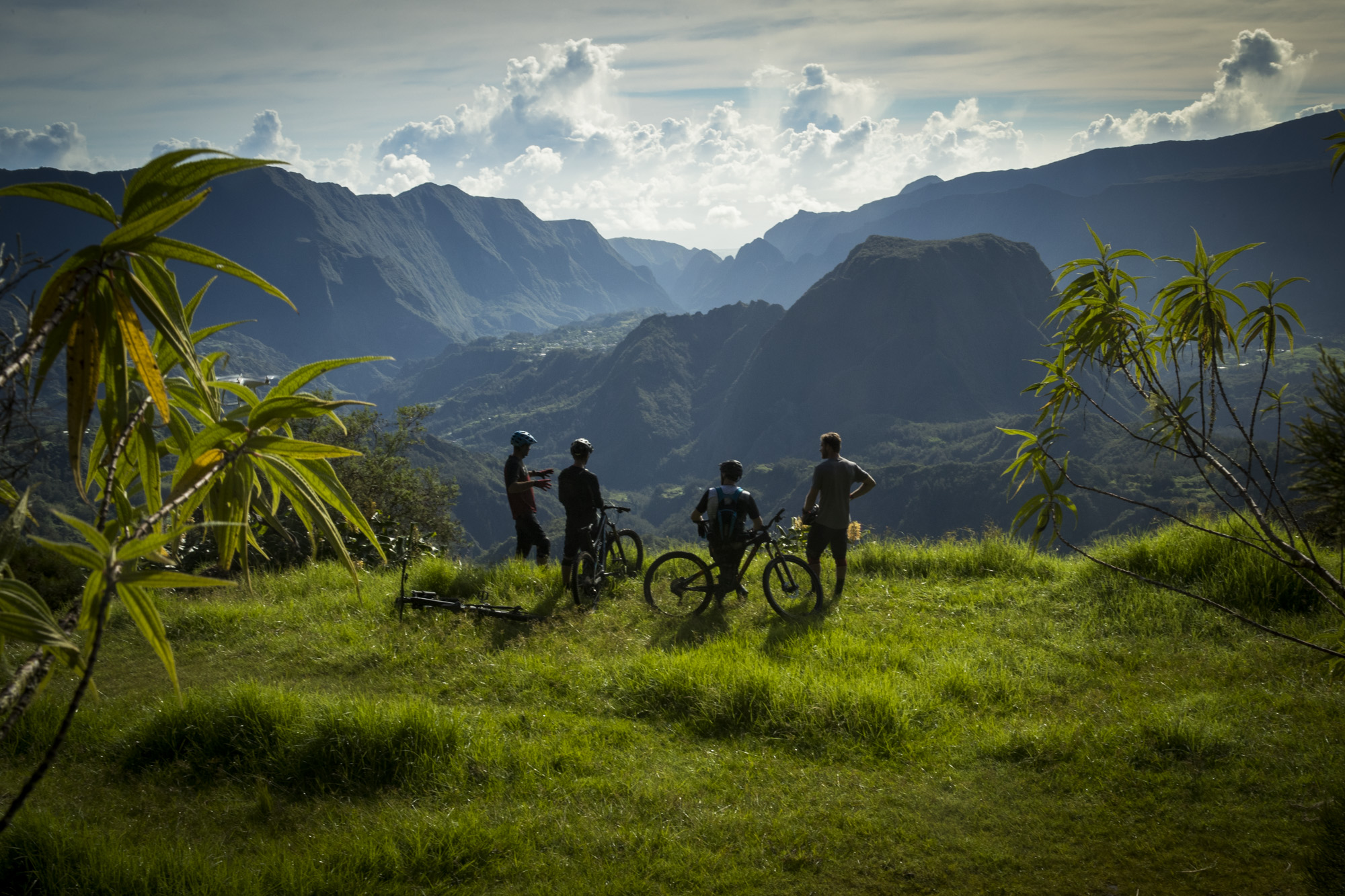 Bryn Atkinson, Bas VanSteenbergen with locals David Delassus and Theo Booy on Reunion Island, Indian Ocean