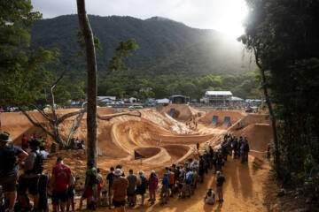 Kicking off the double header event day, riders took on a technical and fast-rolling pump track surrounded by the lush Cairns rainforest. The deciding factor for riders advancing into the final rounds was precise timing from the moment they left the start gate to all throughout the features and corners on the newly designed track by Flux Trails. With progression in mind, the builders focused on increasing the speed for riders to really take advantage of the huge corners and fast built features. This was accomplished with a significantly taller start ramp to launch riders into a hotter start right out of the gate.