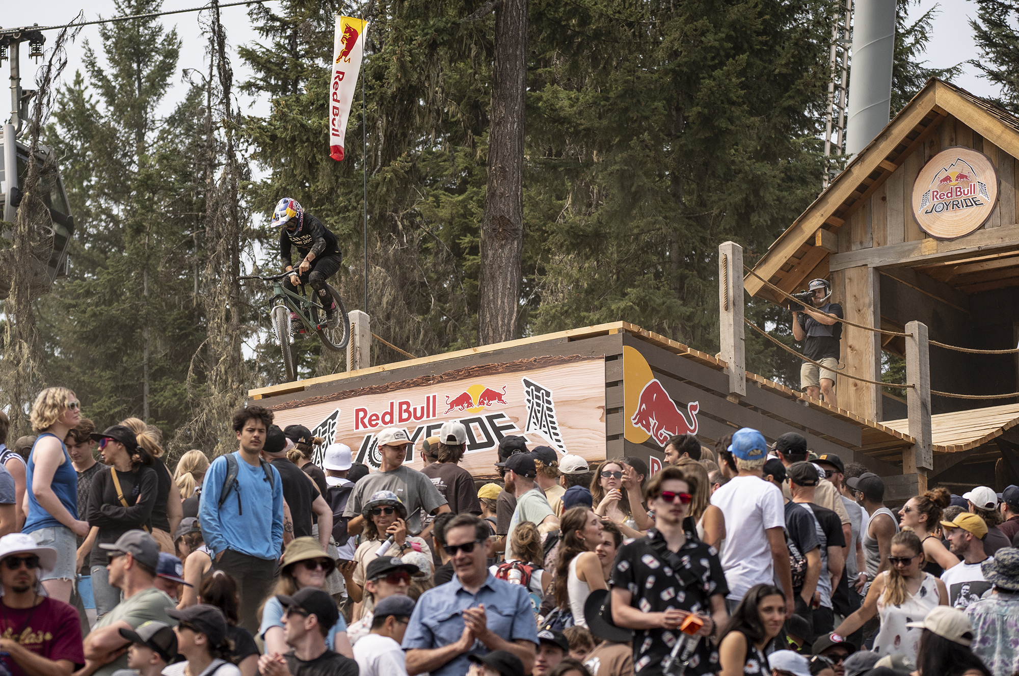 The jewel in the Crankworx week crown has to be Joyride. The sheer size of the course that ends up in the Whistler Village need sot be seen in the flesh to be believed. As does the size of the crowd in attendance. Probably only surpassed by the rivers of beer that are served from the Longhorn…
