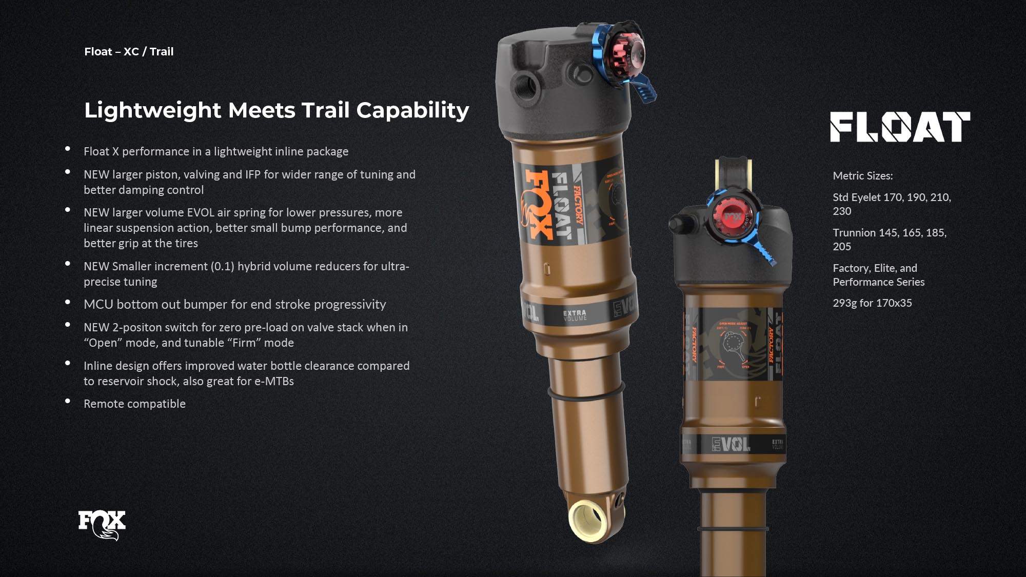 • FLOAT X: Optimized for Trail and All Mountain, but capable of conquering any terrain with confidence