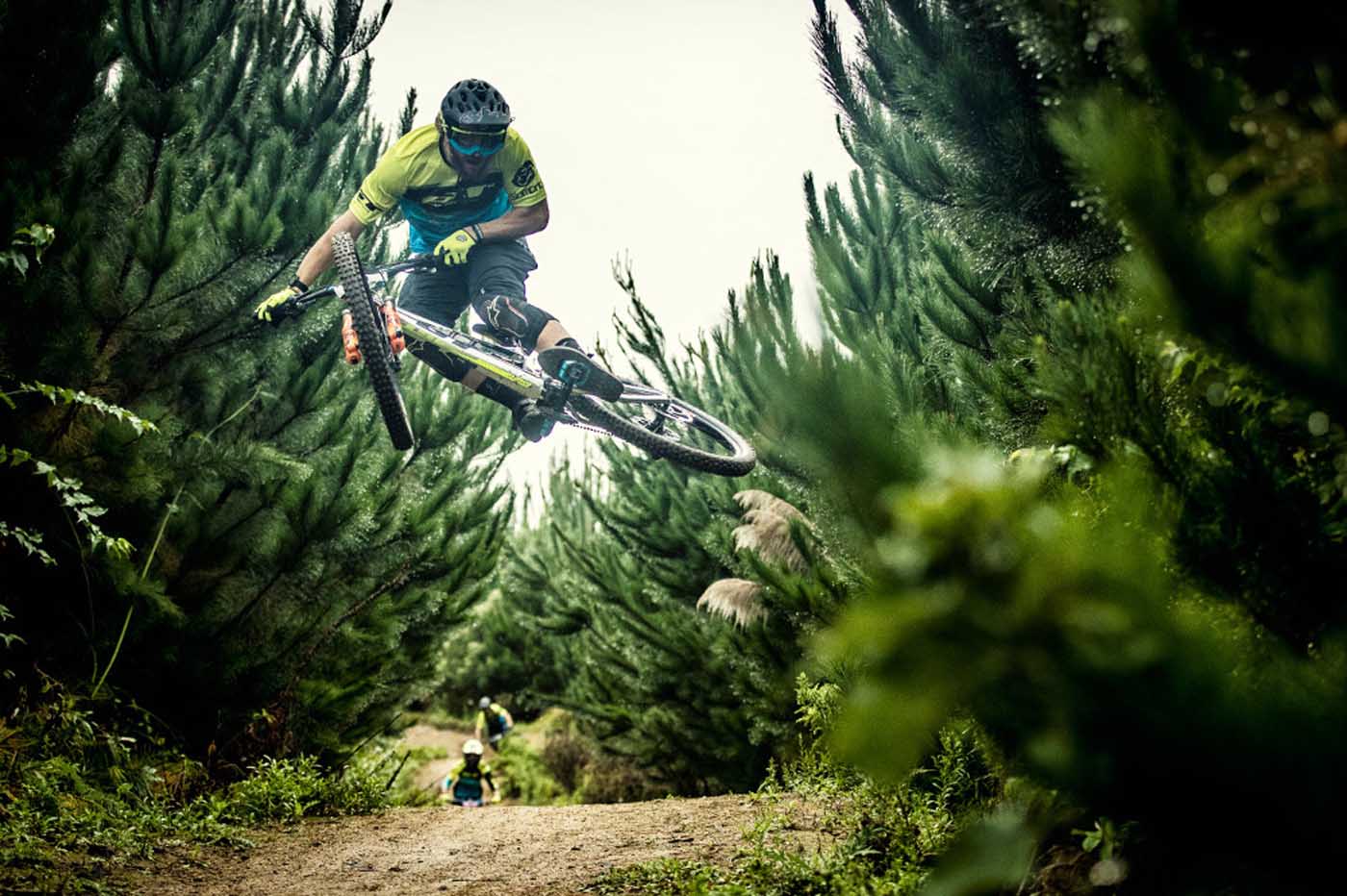 Another secret is to have the stem top cap a little tight to stop the bars from turning as you go, then try to stay central over the bars while leaning on the balance point and wheelie’ing away uphill. Also, uphill is much easier and safer from looping out. It takes practice and repetition but eventually you find you can do one pedal then two and so on then you will be no handed wheelie’ing everywhere, I like to do it on the EWS transfer stages as long climbs can get a bit boring