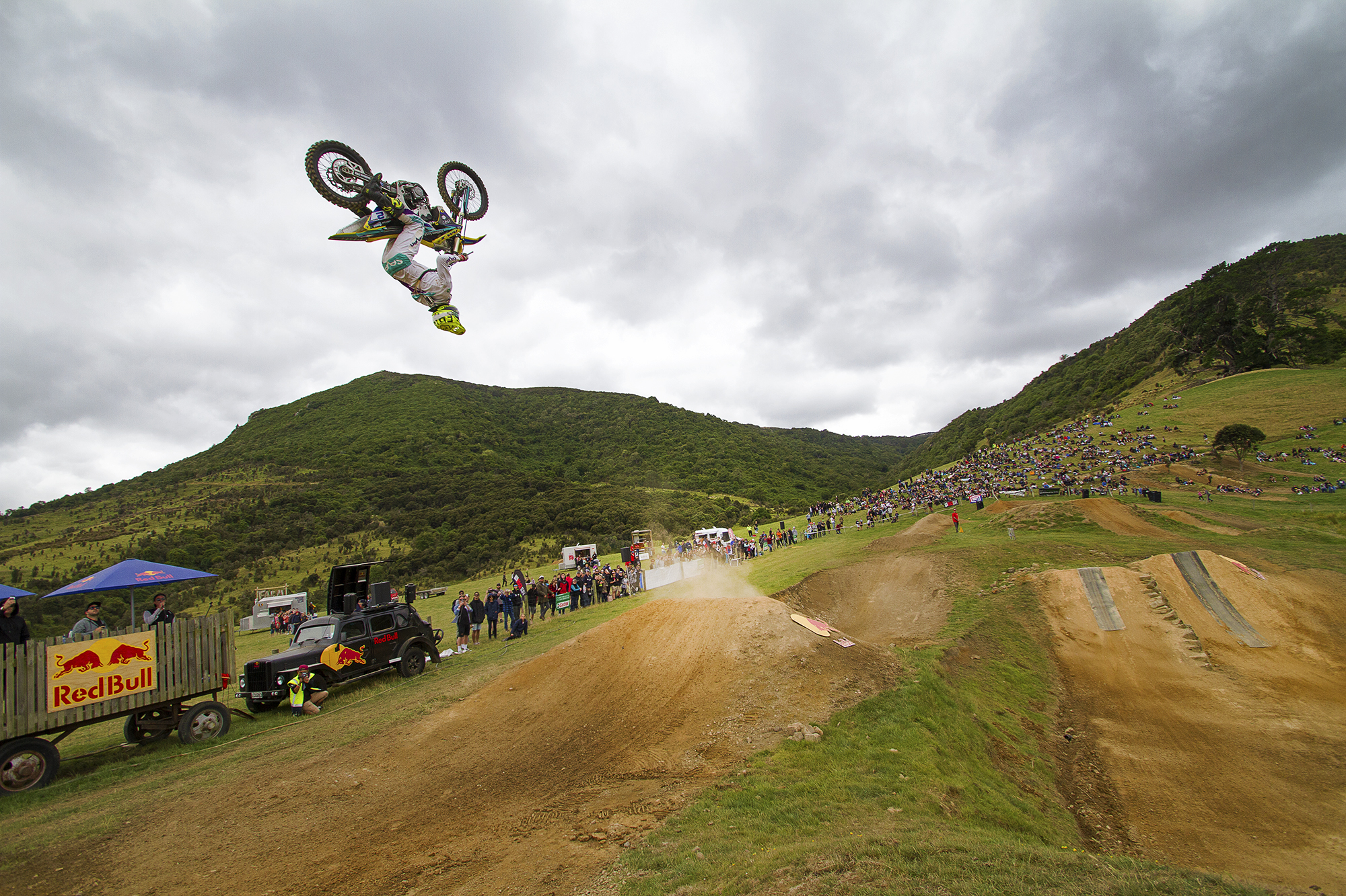 The freestyle motocross competition saw local rider Andrew Jackson topple some of the biggest names in the sport as he flipped and whipped his way to the win ahead of American freeriding phenomenon Tyler Bereman and legendary Australian FMX rider Jake Bowen. Bereman destroyed the field in the freeride contest on Friday, but 24-year-old Jackson from Gore stunned everyone with his relentless bag of tricks and whips Saturday’s freestyle competition. When the results from the two contests were collated, Jackson came away with a memorable win.