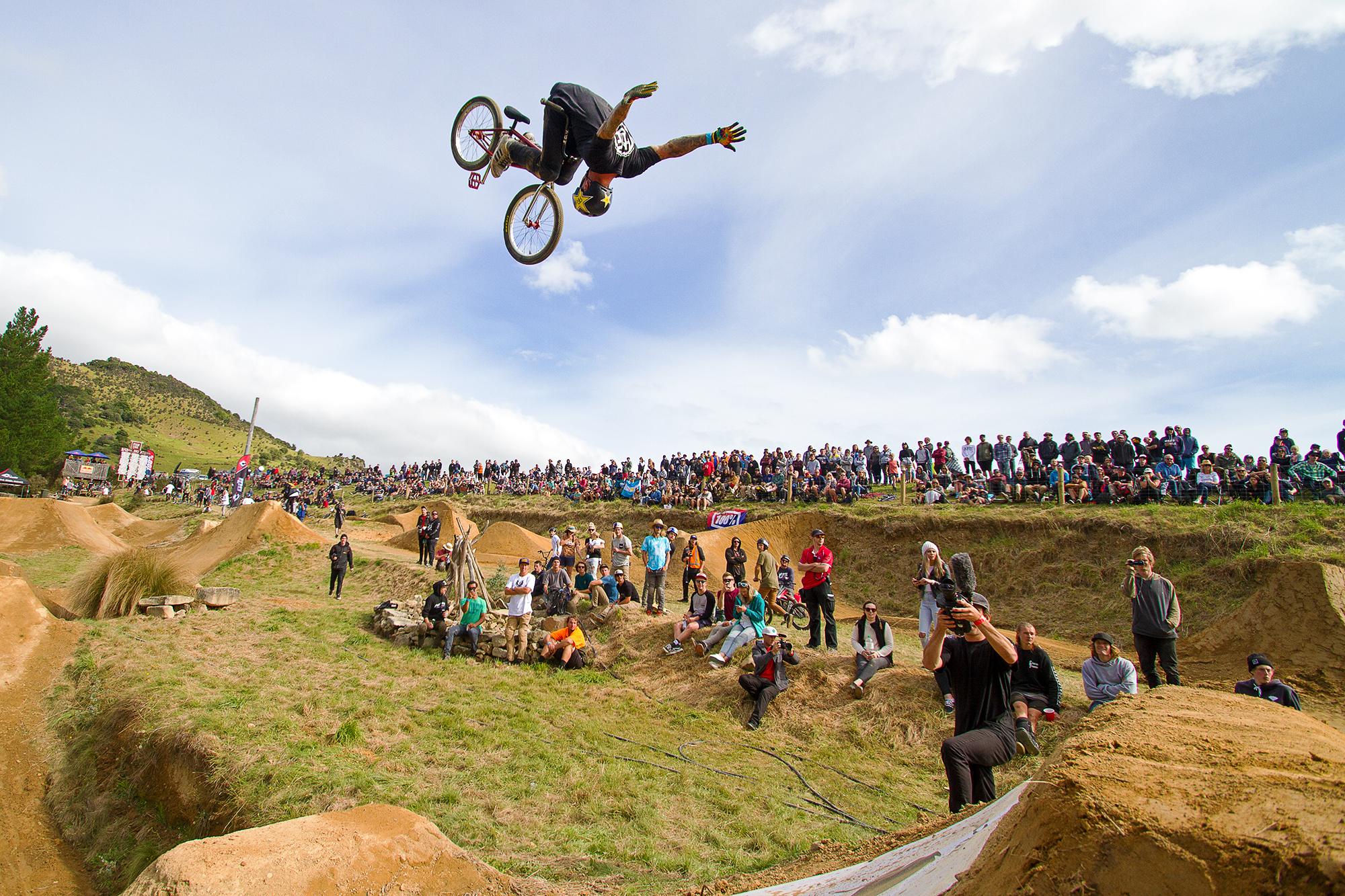 The mountain-bike contest saw the largest ever influx of international athletes, with almost three-quarters of the star-studded field hailing from abroad. Even though the field was the strongest in the Farm Jam’s 10-year history, UK 23-year-old Matt Jones continued his dominance to win his third straight Farm Jam crown with his trademark style and amplitude. Second place went to always-impressive Raglan rider Lewis Jones, with US-based rider Ray George rounding out the podium.