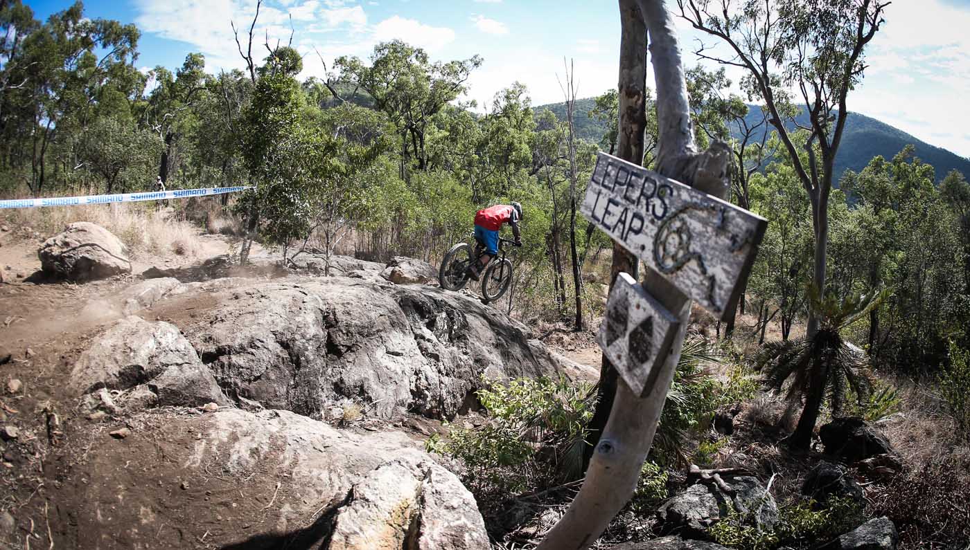 From dry, dusty practice on a warm-to-hot winters day came an overcast and humid race morning. Rain perhaps? Riders set out from pit lane in small groups to warm up on the climb up Mt Archer. The liaison resembled a catorgorized le Tour hilltop finish, but the cool breeze and mist streaming over the mountain top gave riders perfect conditions to cool down and prepare for stage 1 – The Dawg track.