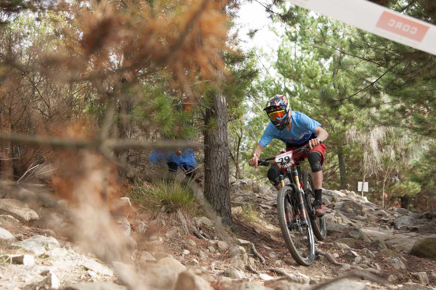 Harrison Dobrowolski on Stage 1 moments before an over the bars crash